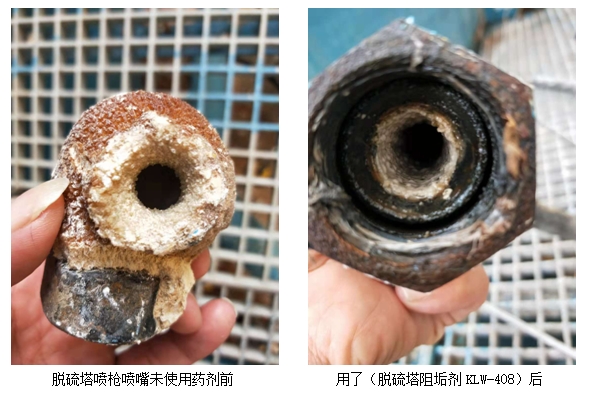 某單位脫硫塔噴槍噴嘴未使用藥劑前和用了藥劑后